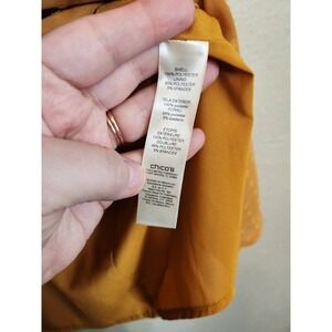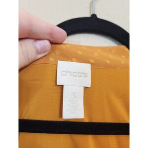 Chico's Women's Mustard Orange Polka Dot Bow Button V-Neck Blouse Top Size XL