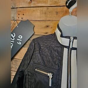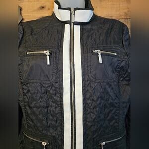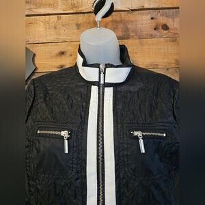 Chico’s Women's Nadia Black White Diamond Quilt Lightweight Jacket Size XS
