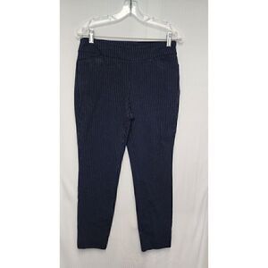 Chicos Women's Navy Blue Striped Stretch Pull-On Slim Leg Pants Size