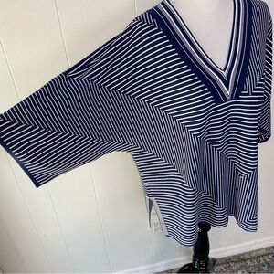 Chicos Women's Navy White Striped Pullover Top Tunic Knit Size Large Sz 3 US XL