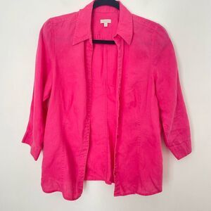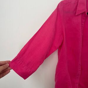 Chico's Women’s Pink No Iron 100% Linen Fresh Chic 3/4 Sleeves Button Up Shirt