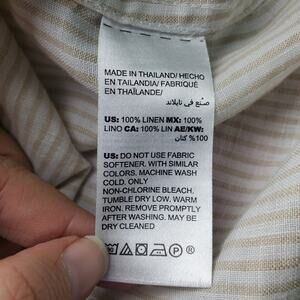 Chico's Womens Sand No Iron Linen Horizontal Stripes Print Rolltab Sleeve Button Shirt Size 2.5 or 14 or Large