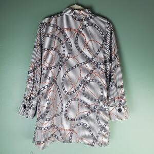 Chico's Womens No Iron Printed Chain Link Striped Button Up Tunic Top Size 2.5 or 14 or Medium