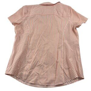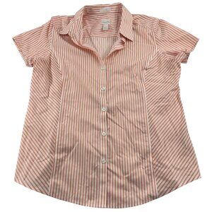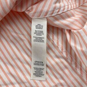 Chicos Women's No-Iron Striped Button-Down Shirt Size 1 Medium Orange/White