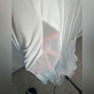 Minor flaw: a blue stain near the neckline (see last picture). This is a great office piece with a mesh windowpane style cardigan made of jersey material. It has 3/4 sleeves.