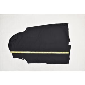 This Chico's women's open-front blazer in classic black is a versatile and stylish layering piece. It features a chic cheetah print lining, adding a touch of bold sophistication when the blazer is open or sleeves are cuffed. The main fabric is a blend of 65% Viscose, 30% Nylon, and 5% Spandex, providing a comfortable stretch and a smooth drape. The lining is 100% Polyester. The blazer is a Chico's size 3, which generally corresponds to a US women's size XL (16). It has a relaxed, open-front design without closures, making it easy to wear over various tops. The blazer is in excellent used condition with no visible signs of wear or damage. Please refer to the provided measurements for accurate sizing.