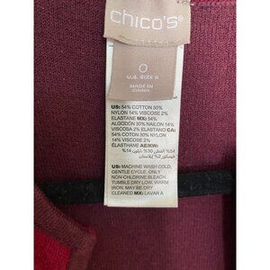 Chicos Womens Open Front Cardigan Size S Ruby Red Knit Jacket Cotton Reversible
