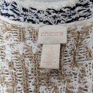 Chico’s Women’s Open Front Cardigan Sweater Metallic Gold Size 3 Artsy Lagenlook