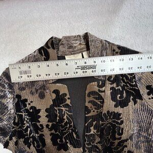 Chicos Women’s Open Front Jacket Size 1 Velvet Burnout Black Beige Floral Casual
