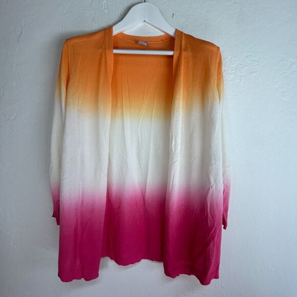 Chico's Womens Open Front Ombré Knit Cardigan Sweater Size 1, Medium Orange Pink