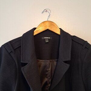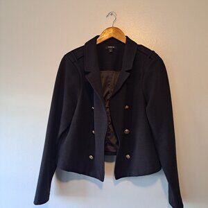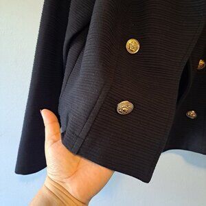 Chicos Womens Open Padded Shoulder Blazer Jacket Black Gold Buttons Size 1