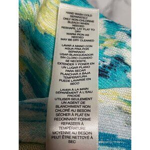 This Chico's cardigan features an open-front design, ideal for layering. Made from a ramie-rayon blend, it offers a comfortable fit and vibrant pattern.