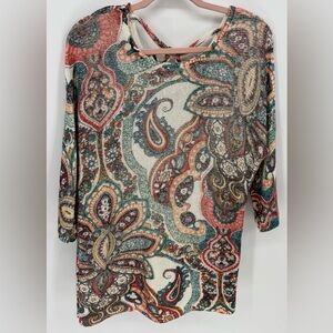 Chicos Paisley Cross-Back Detail Sweater