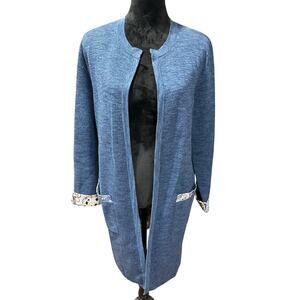 Chicos Women’s Paisley Leopard Print Detail Long Line Cardigan SZ 2 casual work