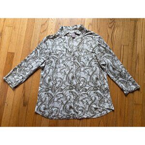This Chico's blouse, designed with an elegant paisley pattern, offers a relaxed fit and a sophisticated look. The button-front detail adds a touch of class to this versatile wardrobe staple. Crafted from a blend of cotton and linen, it provides comfort and breathability, making it ideal for all-season wear.