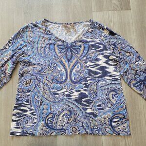 Chicos Womens Paisley Print 3/4 Sleeve Top Size 1 Multicolor Small