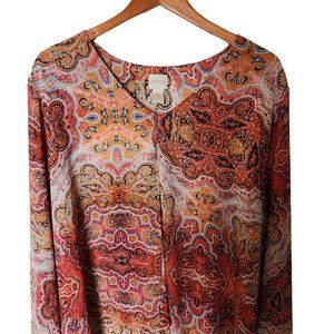 Chico's Women’s Paisley Tunic Top Boho Floral Mandala Blouse size XXL 20 22
