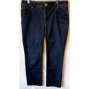 Chicos Womens Platinum Jeans Size .5 Tall 6 Blue Mid Rise Tapered Classic Denim