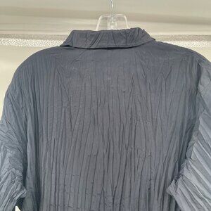 Chico's Womens Pleated Texture Button Up Top Long Sleeve Charcoal Size XL