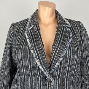 Chicos Womens Plus Petite Striped Tweed Blazer Navy Blue Fringe size 16P 18P