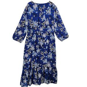 Chico's Womens Plus Size Blue Chiffon Floral Paisley Maxi Dress