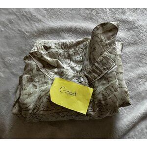 Elevate your wardrobe with this unique Chico's button-up shirt featuring a captivating map print design. Lightweight fabric ensures comfort and versatility, making it a standout choice for daily wear or travel. Its neutral beige tones complement various outfits, offering both style and practicality.
