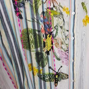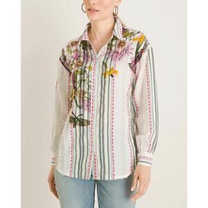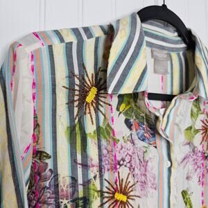 Chico's Women's Printed Embellished Floral Top Size 8 Embroidered Beaded Striped