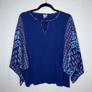 Chico’s Women’s Printed Kimono Sleeve Top Keyhole Neck Blue Size 1