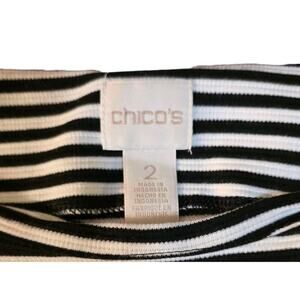 Chico's Women's Pullover Blouse Tunic Zip Shoulders Size 2 US L/12 Black White