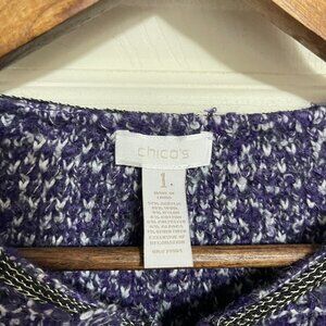 Chico's Women's Purple Wool Blend Clasp Front Tweed Pockets Blazer Medium/8. Measurements Shoulder to shoulder: 15" Underarm to underarm: 19" Length: 23" Sleeve: 25" Offers always welcome! Measurements are approximations taken while hanging