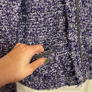 Chico's Women's Purple Wool Blend Clasp Front Tweed Pockets Blazer Medium/8