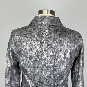 Chicos Womens Python Print Jacket Metallic Gray Button Front size Small