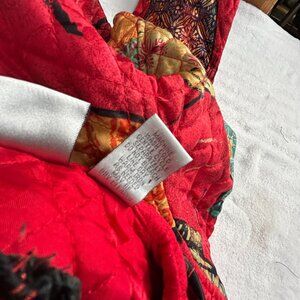 Chico's Womens Quilted Lantern Print Jacket Size 2 Red Silk Zip Up Lightweight