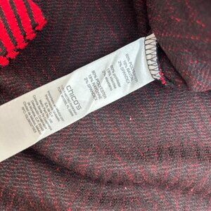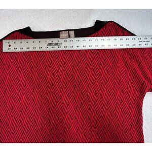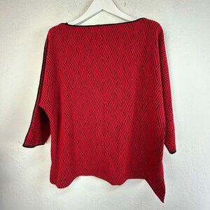 Chico's Womens Red & Black Herringbone Sweater Top Size 3 Boat Neck Relaxed Fit