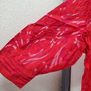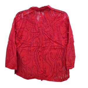 Chico's Women's Red Fuchsia Rayon Blend Sheer Cut Out 3/4 Sleeve Button Up Sz 2