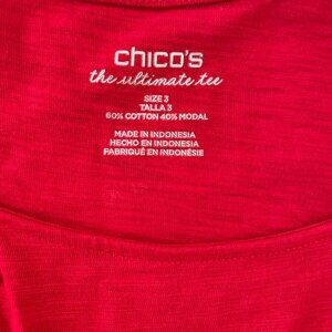 Chico's Womens Red Slub Knit 3/4 Sleeve Comfort The Ultimate Tee Size 3 US XL