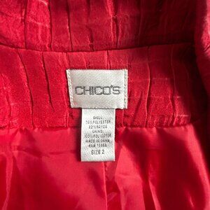 Chico's Womens Red Textured Pattern Blazer Jacket Size 2 Lined Lightweight