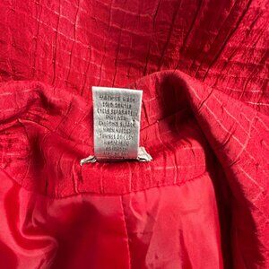 Elevate your wardrobe with this vibrant red blazer from Chico's, designed to add a pop of color and sophistication to any ensemble. The unique textured pattern and comfortable polyester-rayon blend ensure a chic, tailored look that's ideal for both professional and casual settings.
