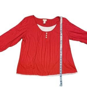 Chico's Women's Red White 3/4 Sleeve Layered Look Soft Knit Blouse Size 2 US L