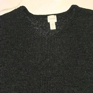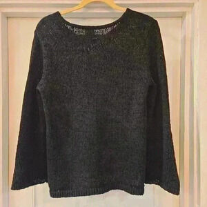 Chicos Womens Relaxed Mesh Knit Tunic Sweater Bell Sleeves Black Size Small