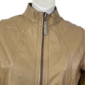 Chicos Womens Reversible Genuine Leather Metallic Silver & Beige Jacket sz 0 / S