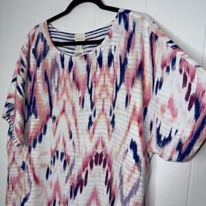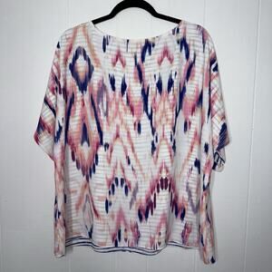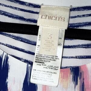Chico’s Women’s Reversible Ikat Striped Tee Pink Blue Size 3 XL