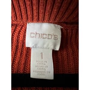 Chico's Women's Ribbed Key Hole Turtleneck Sweater Long Sleeve Orange Size 1 (M)