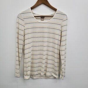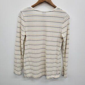 Chicos Womens S (0) Metallic Stripe Long Sleeve Top Minimalist Stretch Shirt
