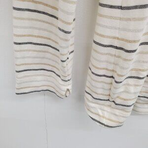 minimalist striped top, chicos metallic stripe blouse, ivory long sleeve shirt, scoop neck stretch top, black and gold stripe tee, womens small long sleeve, comfy knit top, classic stripe shirt, layering blouse, everyday striped shirt, casual long sleeve top, stretchy rayon blend shirt, office casual blouse, chicos small womens top, versatile striped shirt, timeless stripe tee, comfy stretch blouse, neutral stripe layering top, long sleeve scoop top, chicos womens stripe top
