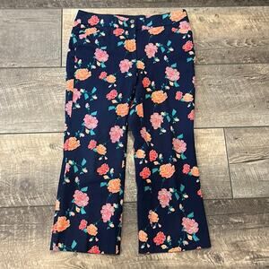 Chico's Women's Secret Stretch Crop Pants Floral Navy Size 2