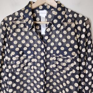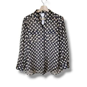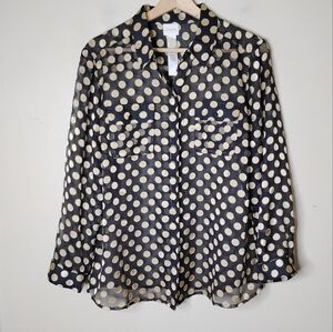 Chicos Women's Sheer Button Down Blouse Size Chicos 2P US LP Sheer Polka Dot