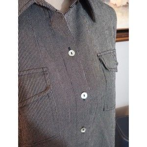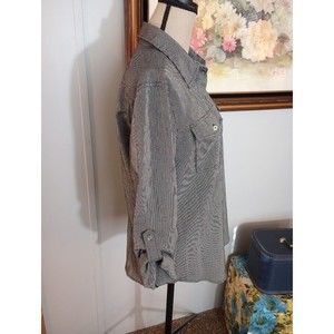 Chico's Women's Shell Button Down Shirt Striped Rolled Tab Sleeve Size 1 Medium