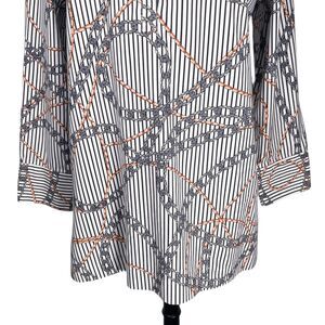 Chicos Womens Shirt 3 XL Navy White Chain Rope Stripe Tunic Stretch Button Top