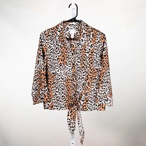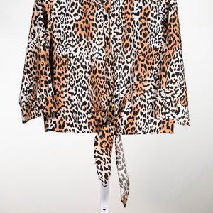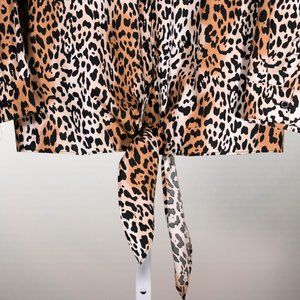 Chico's Womens Shirt Button Up Animal Cheetah Print Tie Waist Crop Top 0 US S/4